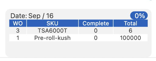 Also, this screen displays assembly item SKU's percentage of completion. You can filter work orders by using the following keywords: