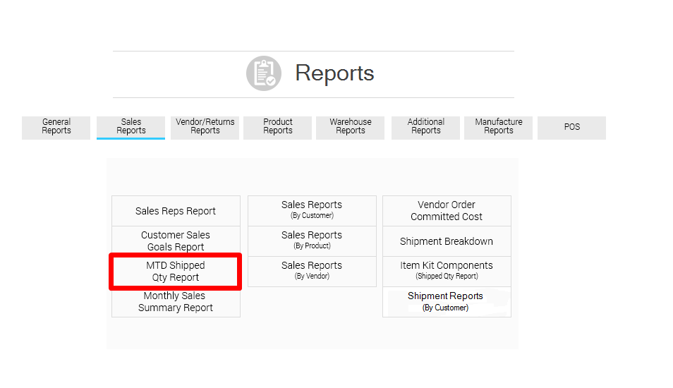 Go to Reports > Sales Reports > MTD Shipped Qty Report