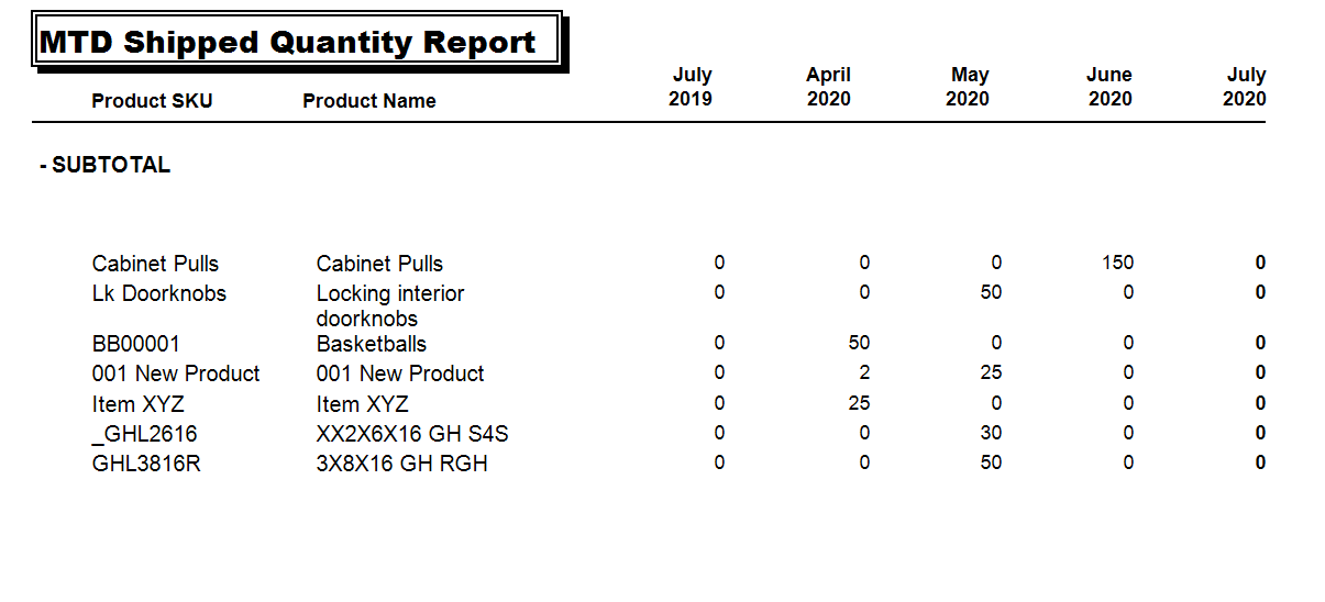 Month to Date Shipped Quantity Report