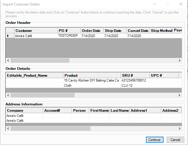 10. You will be then shown this preview of the orders that will be imported to AP, just click on continue.