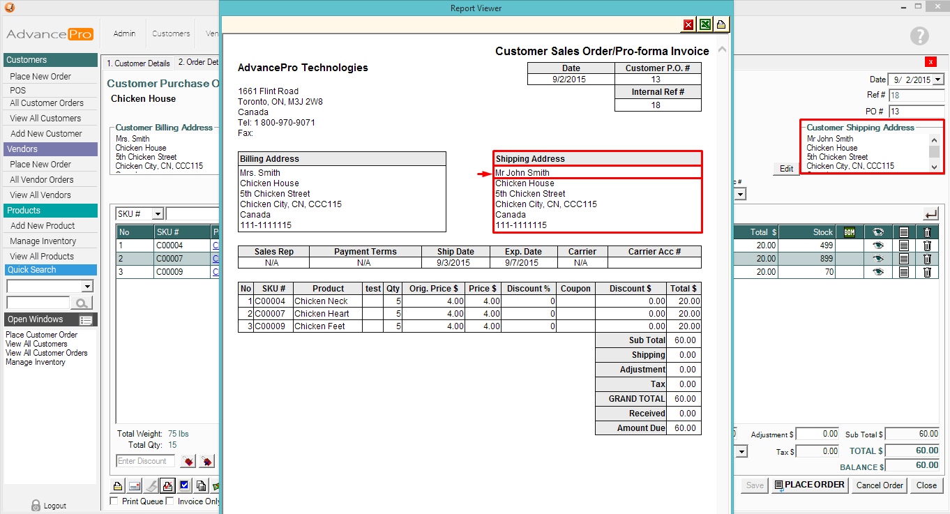 4. The Shipping and Billing Names are now visible on the Print Preview of the invoice/order.