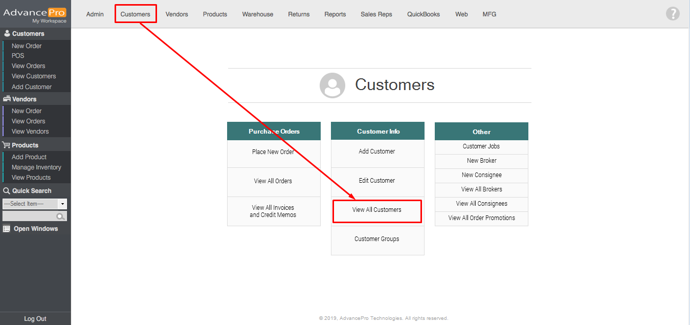 - To access this feature, Go to Customers > View All Customers