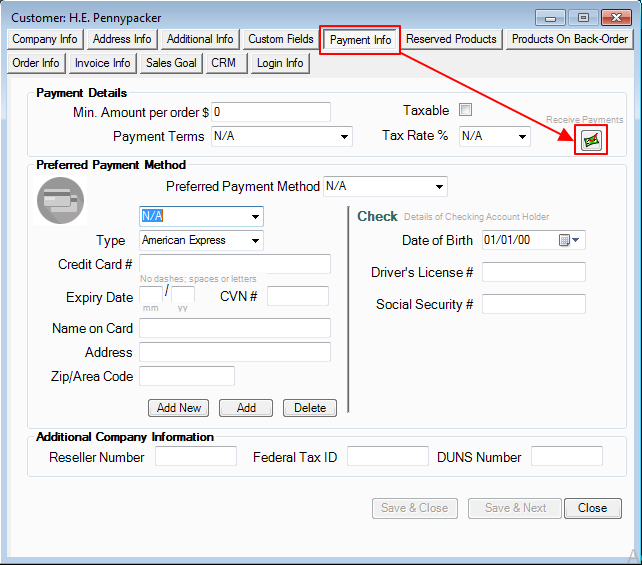 New Payment and Credits feature has been added and can be accessed from the Customer Screen under Payment Info and Invoice Info for easier processing.
