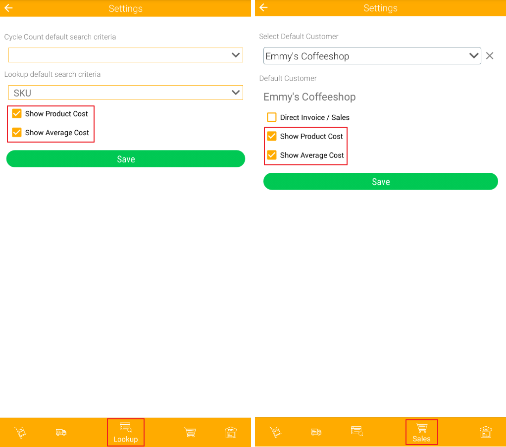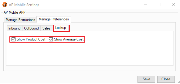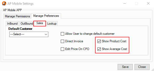 - These are the new options that have been added to Sales & Lookup under Manage Preferences: Show Product Cost & Show Average Cost. Select the options and click on Save