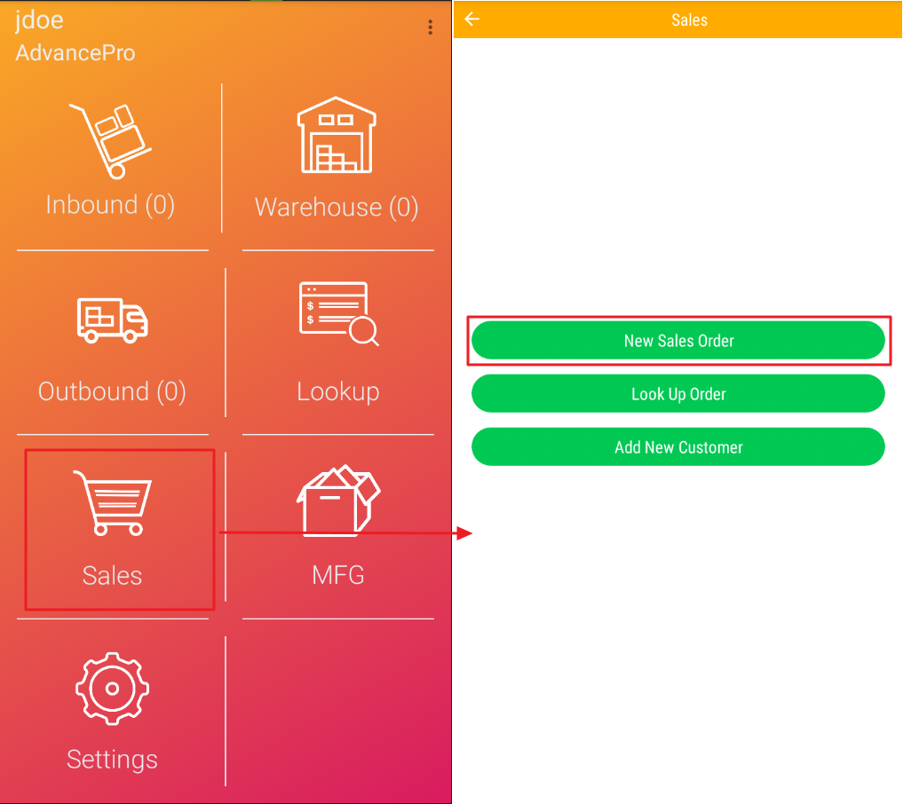 - Let's try accessing the feature on Sales. Go back to the main screen and tap on Sales > New Sales Order