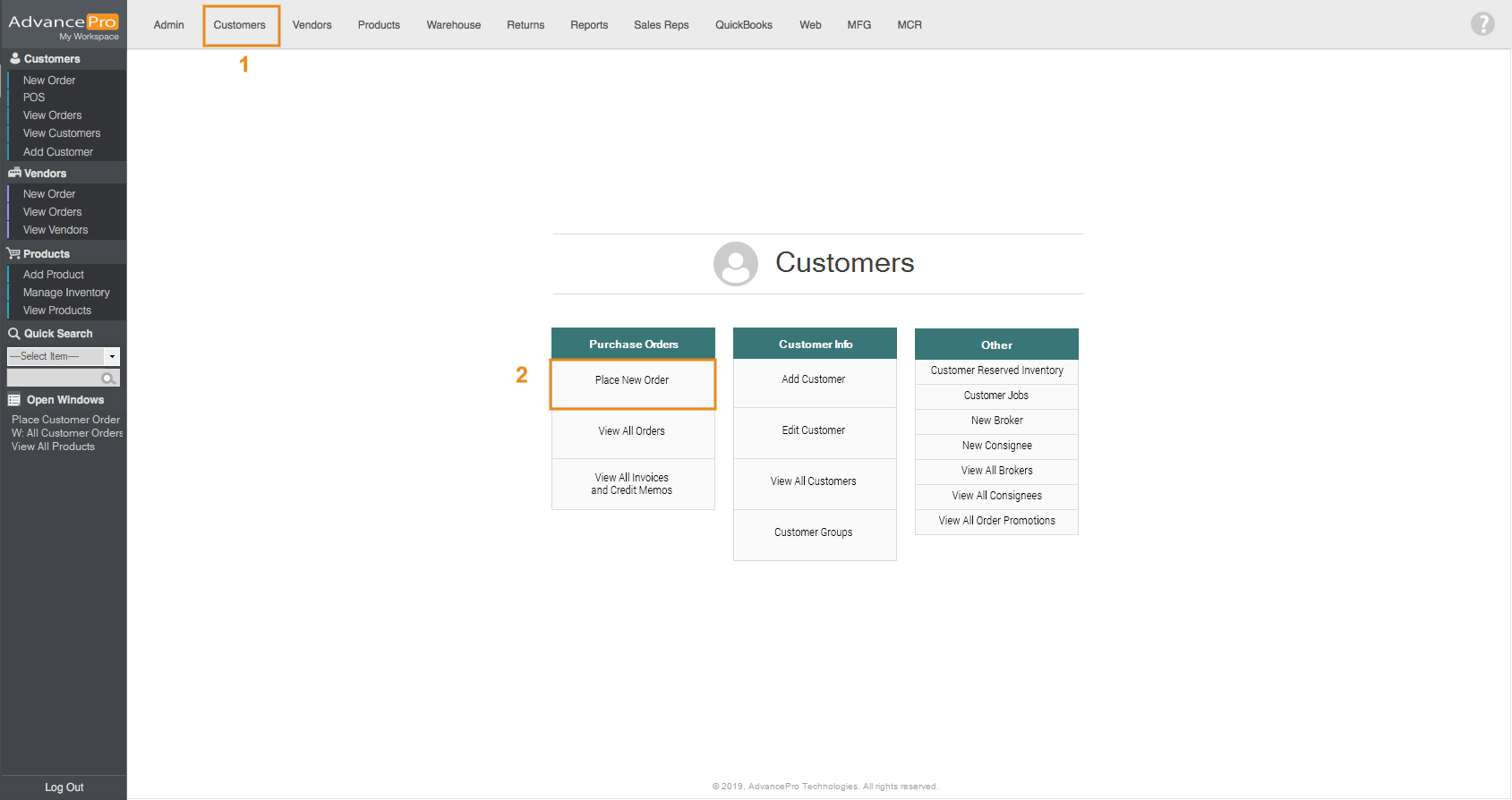 - Warehouse Order - By clicking on the Pick Ticket, the user can process the order through the warehouse and this order can be invoiced.