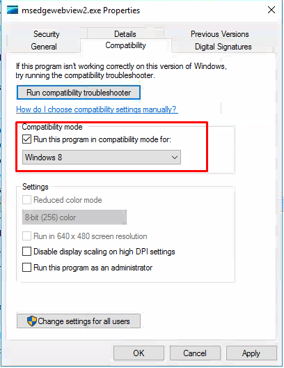 Open properties of msedgewebview2.exe