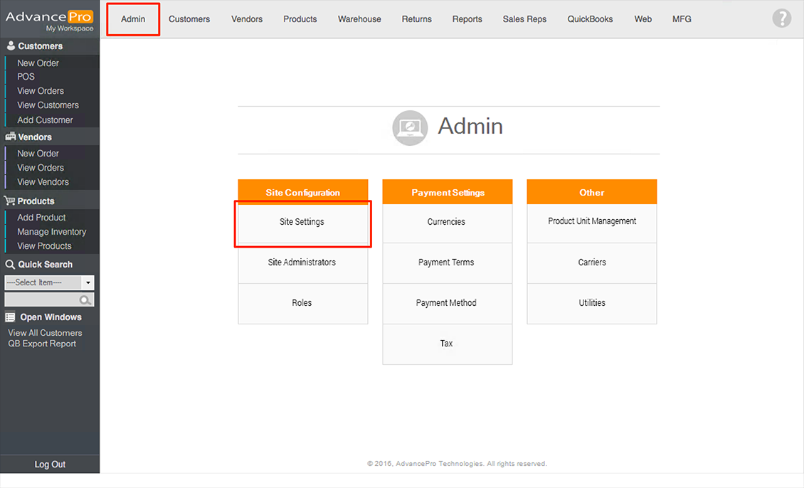 Enabling the QuickBooks sync will allow you to keep your QuickBooks company file up to date with the latest changes performed in AdvancePro, eliminating the need for double-entry. If you are setting up a new AdvancePro company and have existing data in QuickBooks, you can also perform a one-time import of customers, vendors and products from QuickBooks.