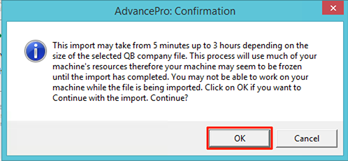 5. Click ‘OK’ on the AdvancePro Confirmation pop-up window.
