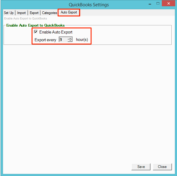 1. Go to ‘QuickBooks' > ‘Settings' > 'Auto Export'