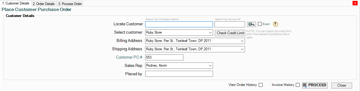 1. Create a New Customer Purchase Order
