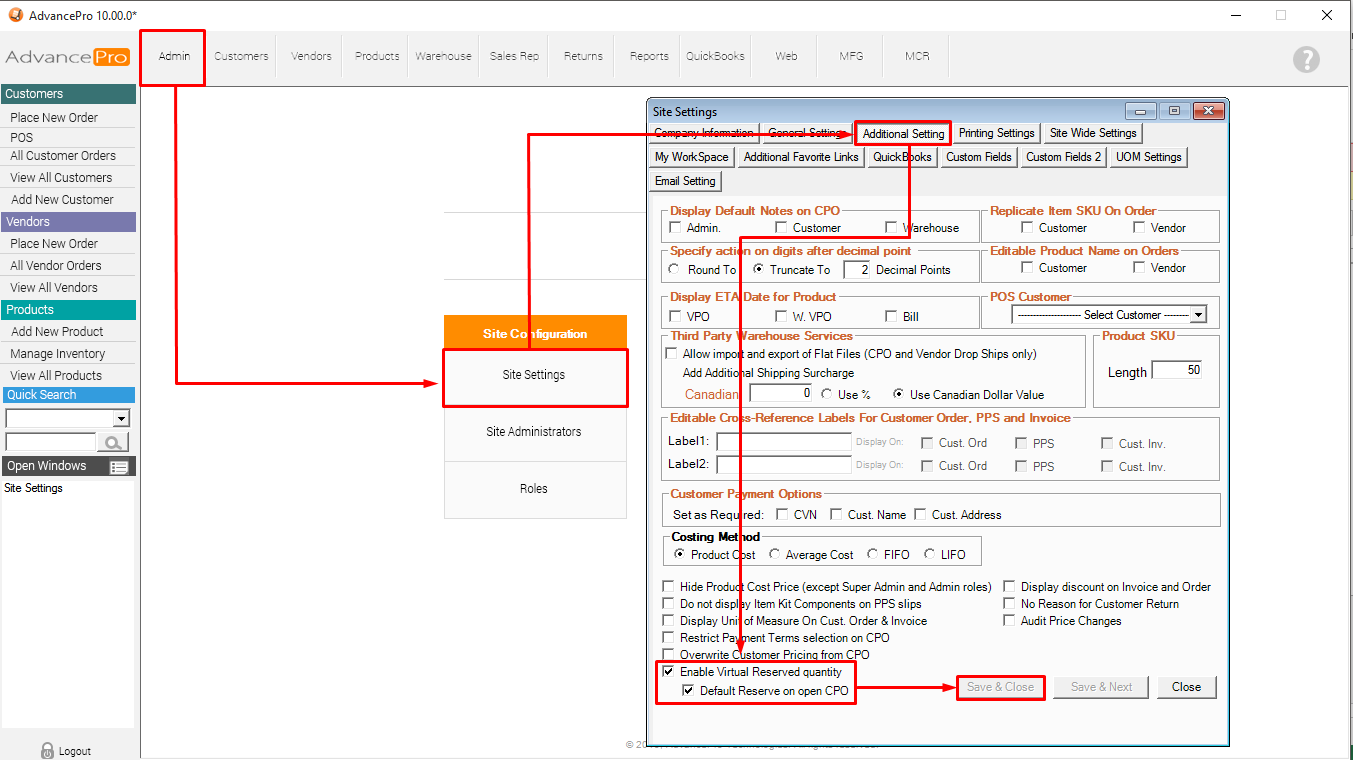 Select "Default Reserve on open CPO" to have newly added products to a CPO create a reserve automatically. Note: Disabling the feature will remove existing reserves.