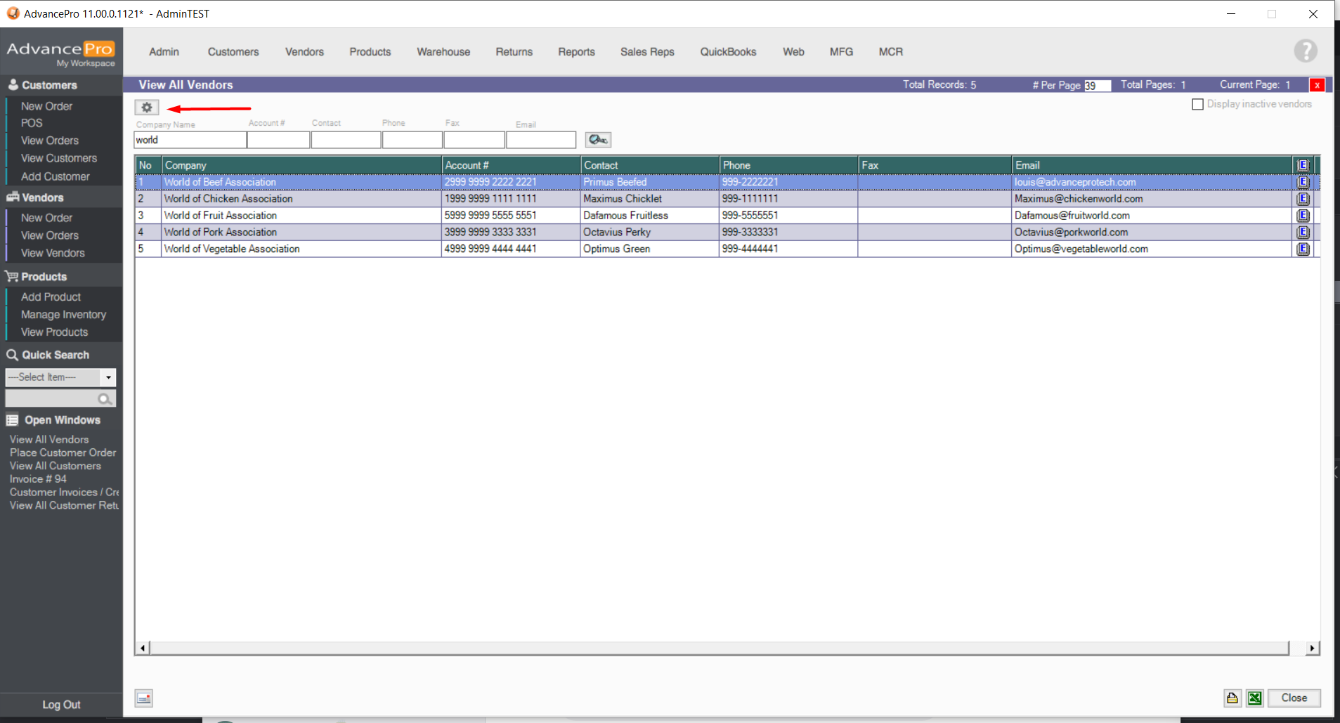 Select Columns to be shown in VIEW ALL CUSTOMERS/PRODUCTS/VENDORS
