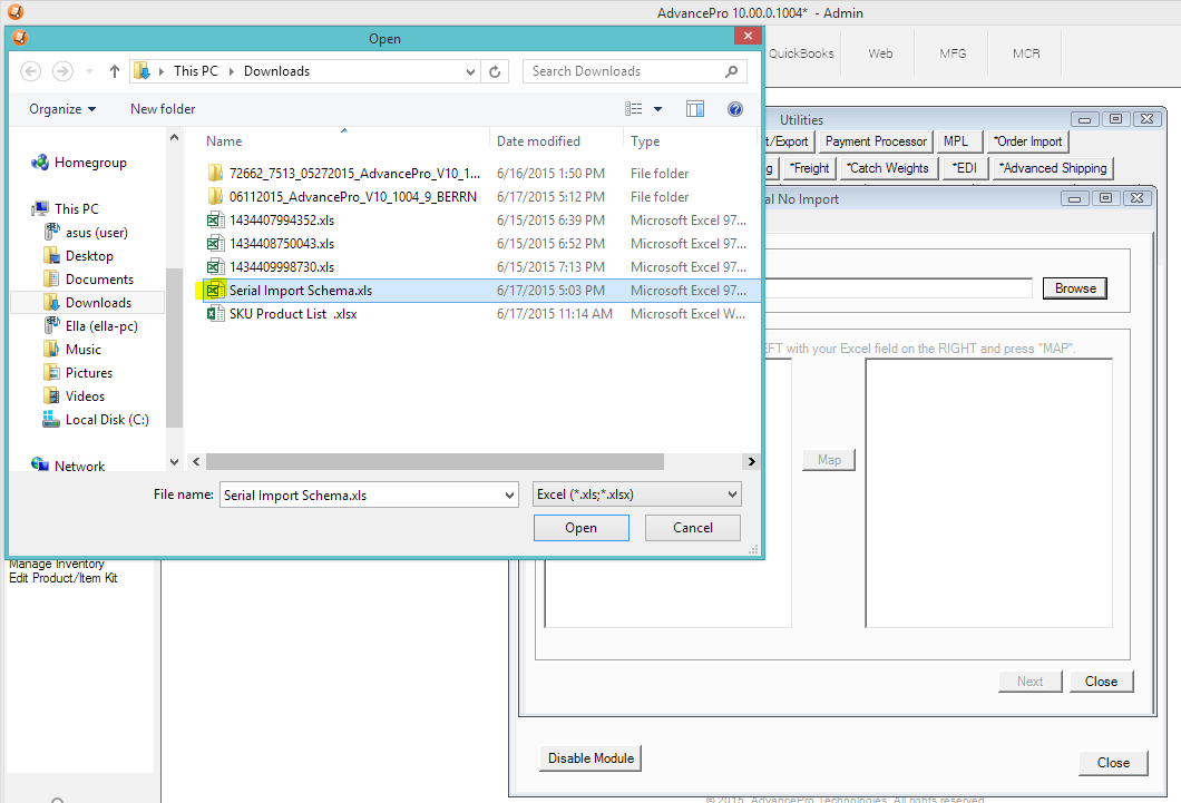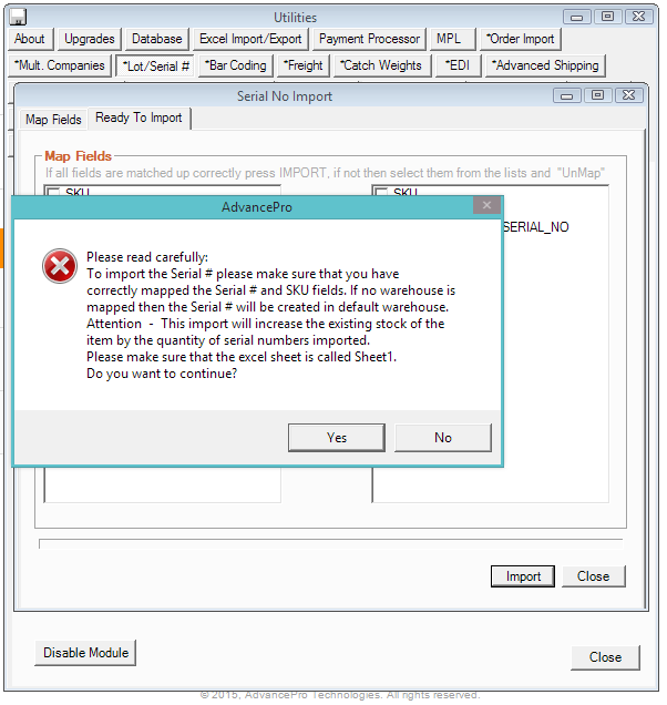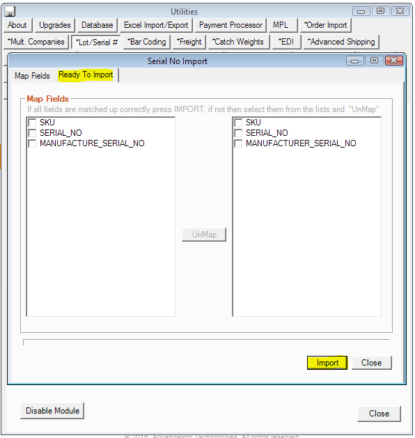 Go to Admin > Utilities > Lot/Serial # ; Excel Import