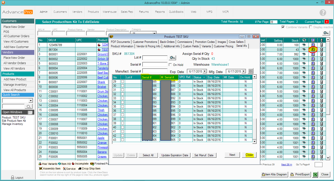 Edit the product and open Serial #s Tab to verify that the information imported correctly.