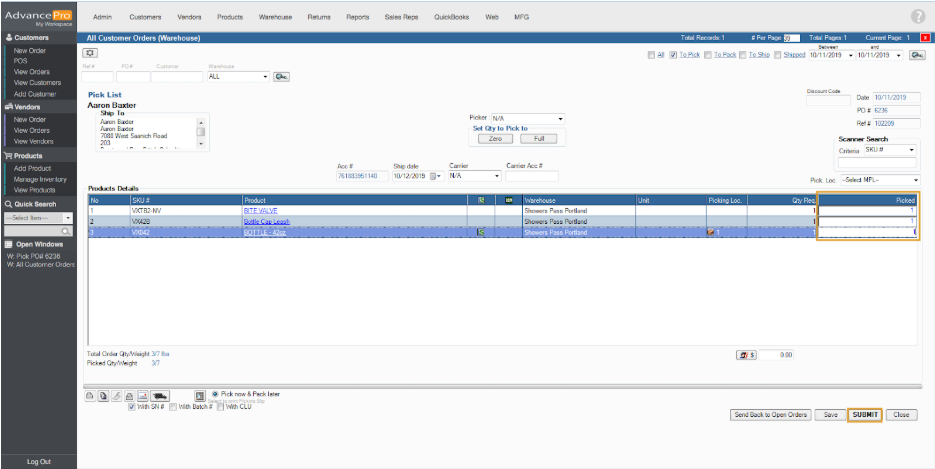 Pack and Ship - Orders will be marked for ShipStation export as soon as they have been picked. Once the label has been created in ShipStation, the order will be shipped in AdvancePro.