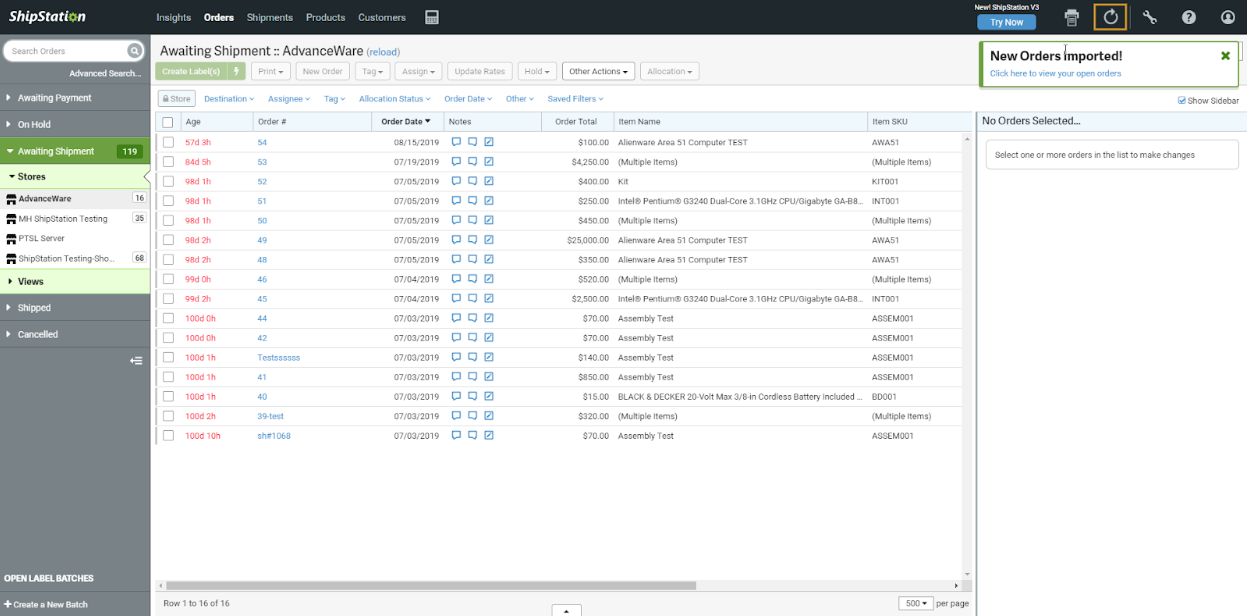 - Login to your ShipStation account and click on the refresh button to update the orders