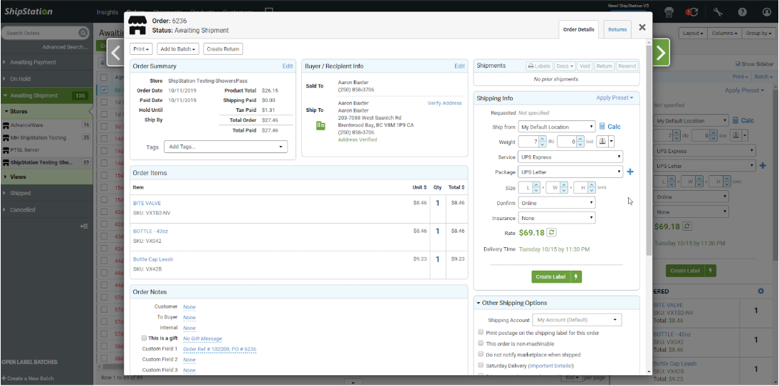 - Once an order has been imported to ShipStation, you can create the label as you normally would. Select Services, Package and then click on Create Label