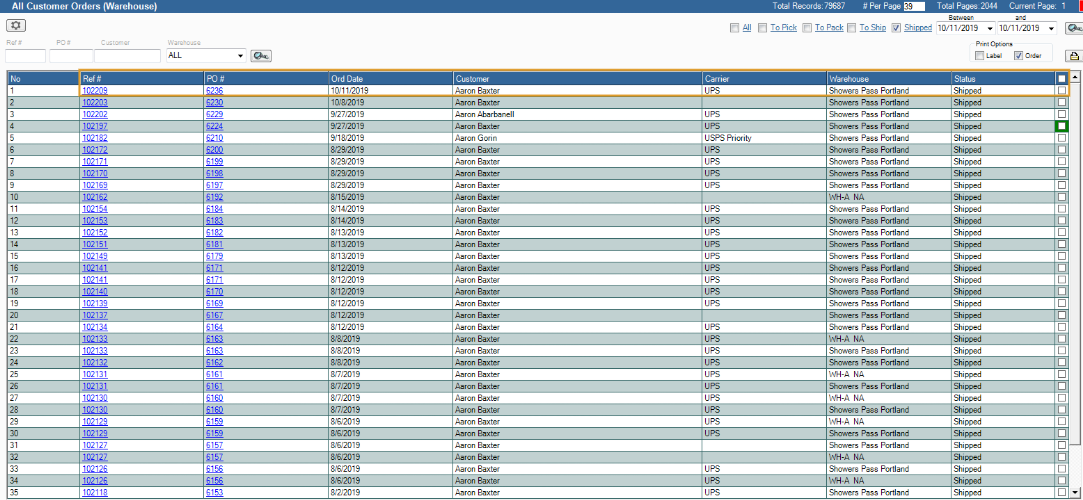 - Click on the order and the tracking number from ShipStation and shipping amount will be visible on the AdvancePro order when clicking “Shipping History” near the top-right of the order. It is also visible when clicking “View Tracking #’s” on the order in the warehouse.