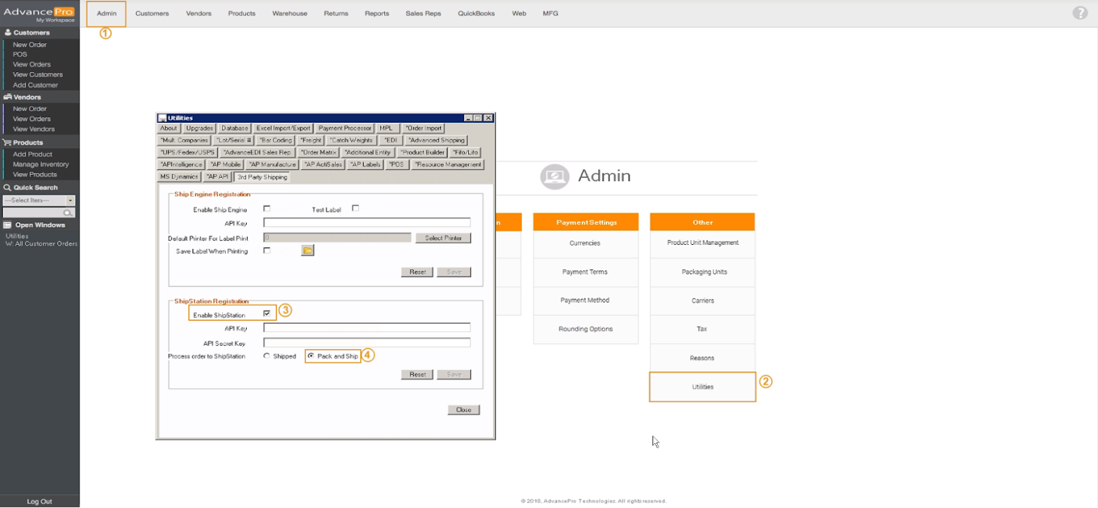 - Make sure to enable ShipStation and tick Pack and Ship by going to Admin > Utilities > 3rd Party Shipping