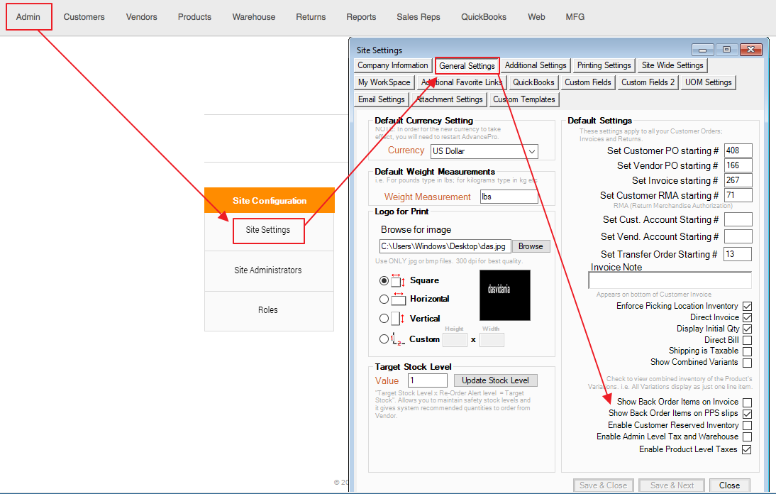 1. Enable "Show Back Order Items on PPS slips" checkbox in Admin > Site Settings > General Settings
