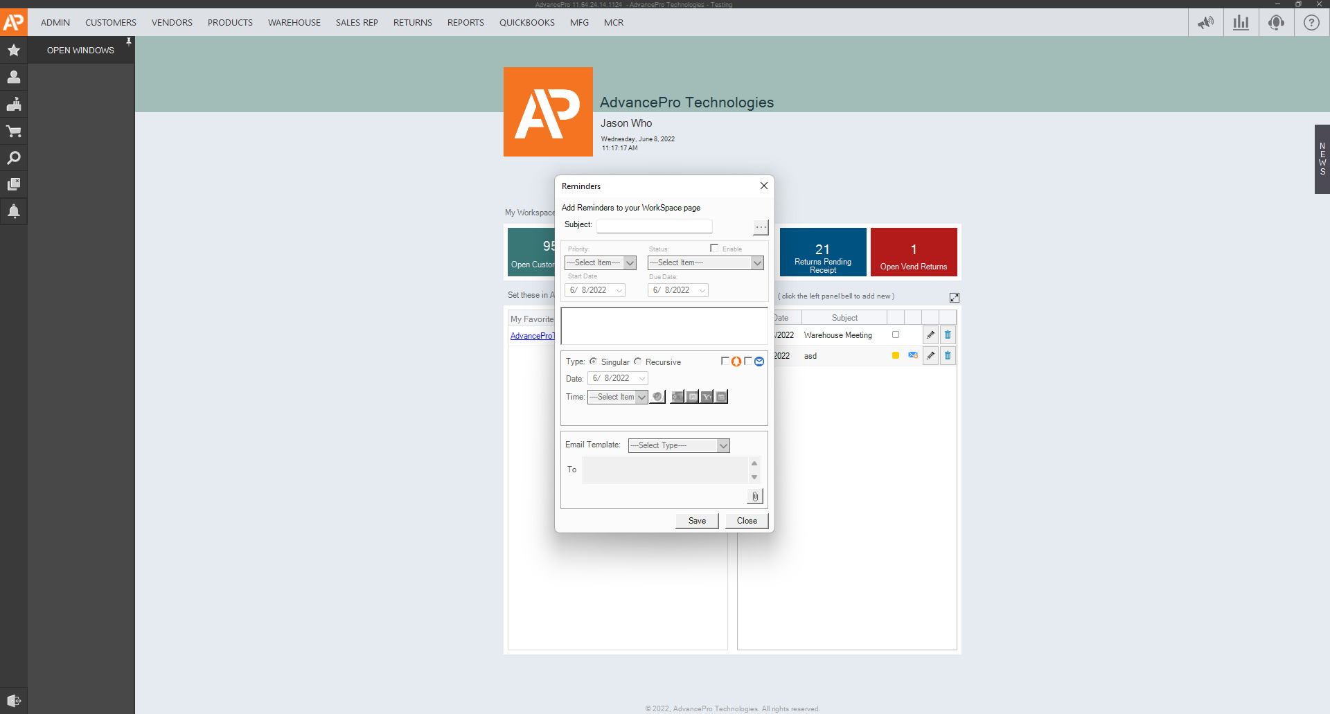 AdvancePro v12 introduces various new features and options to enhance user experience. Additional features include, but not limited to, changes to the GUI, introduction of smart menus, widgets, charts, advanced search capabilities, optimization of various screens, and others.