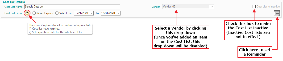 AdvancePro has added a new feature that will allow users to create a vendor cost list and set it on a specific date range