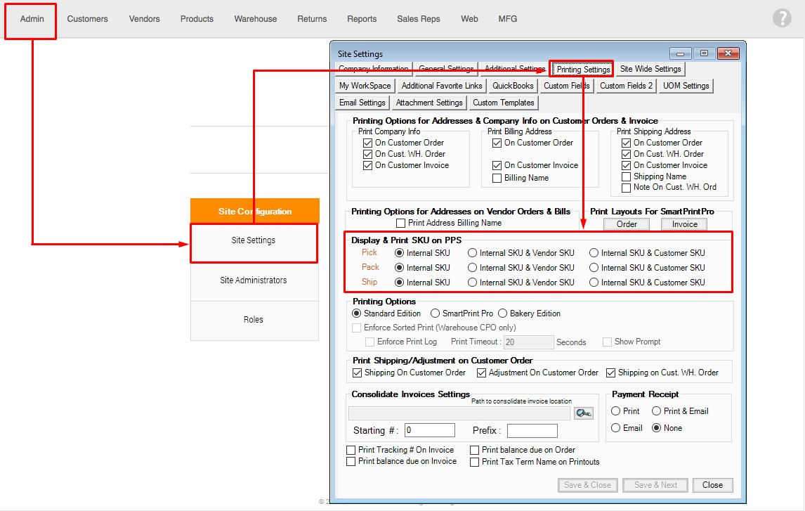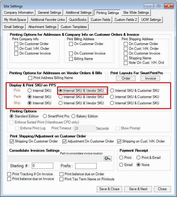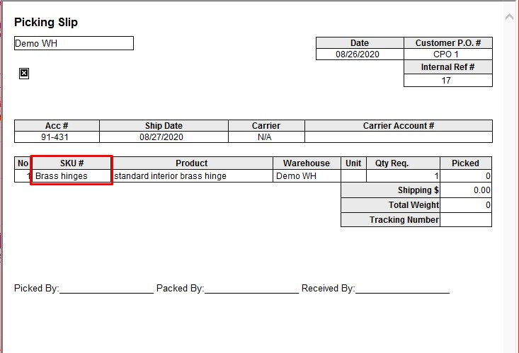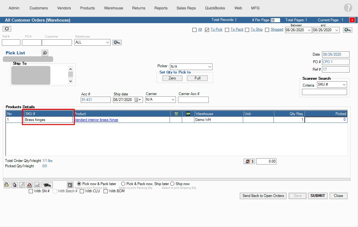 1. Default Setting: Internal SKU (on Pick, Pack and Ship)