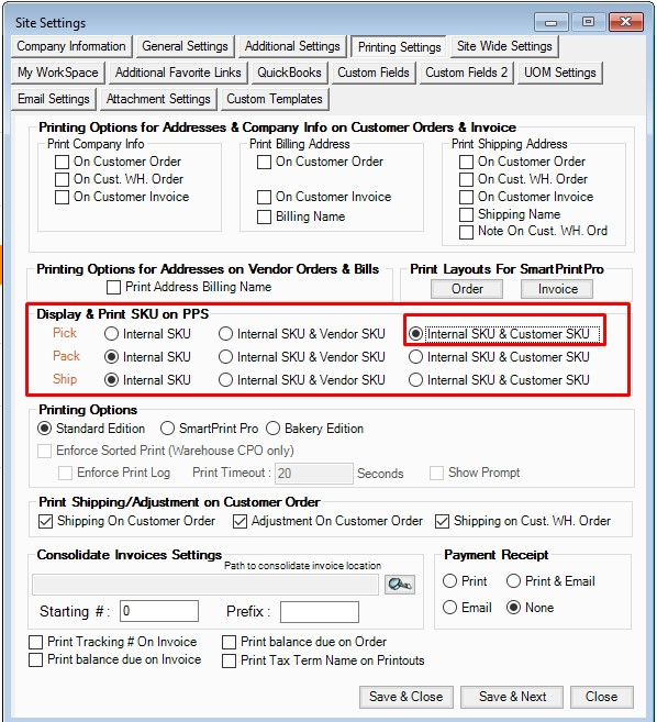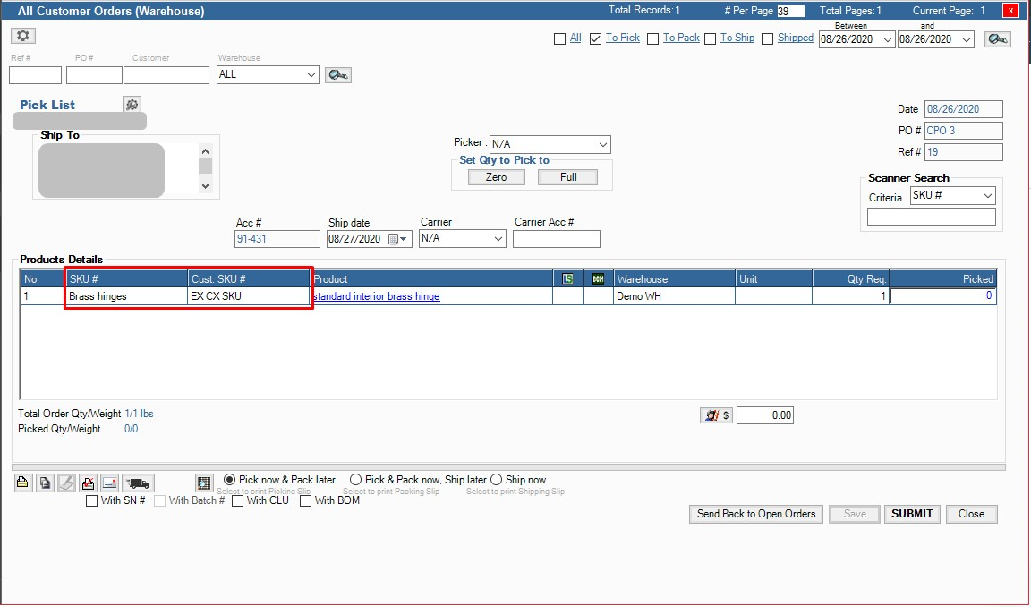 3. Internal SKU & Customer SKU (on Pick, Pack and Ship)