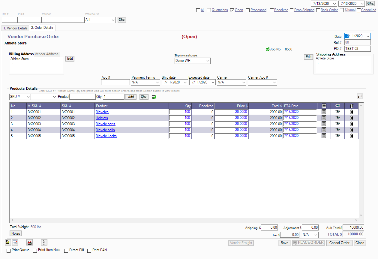 To display the ETA Date of each line item on a Vendor Order, go to Admin > Site Settings > Additional Settings.